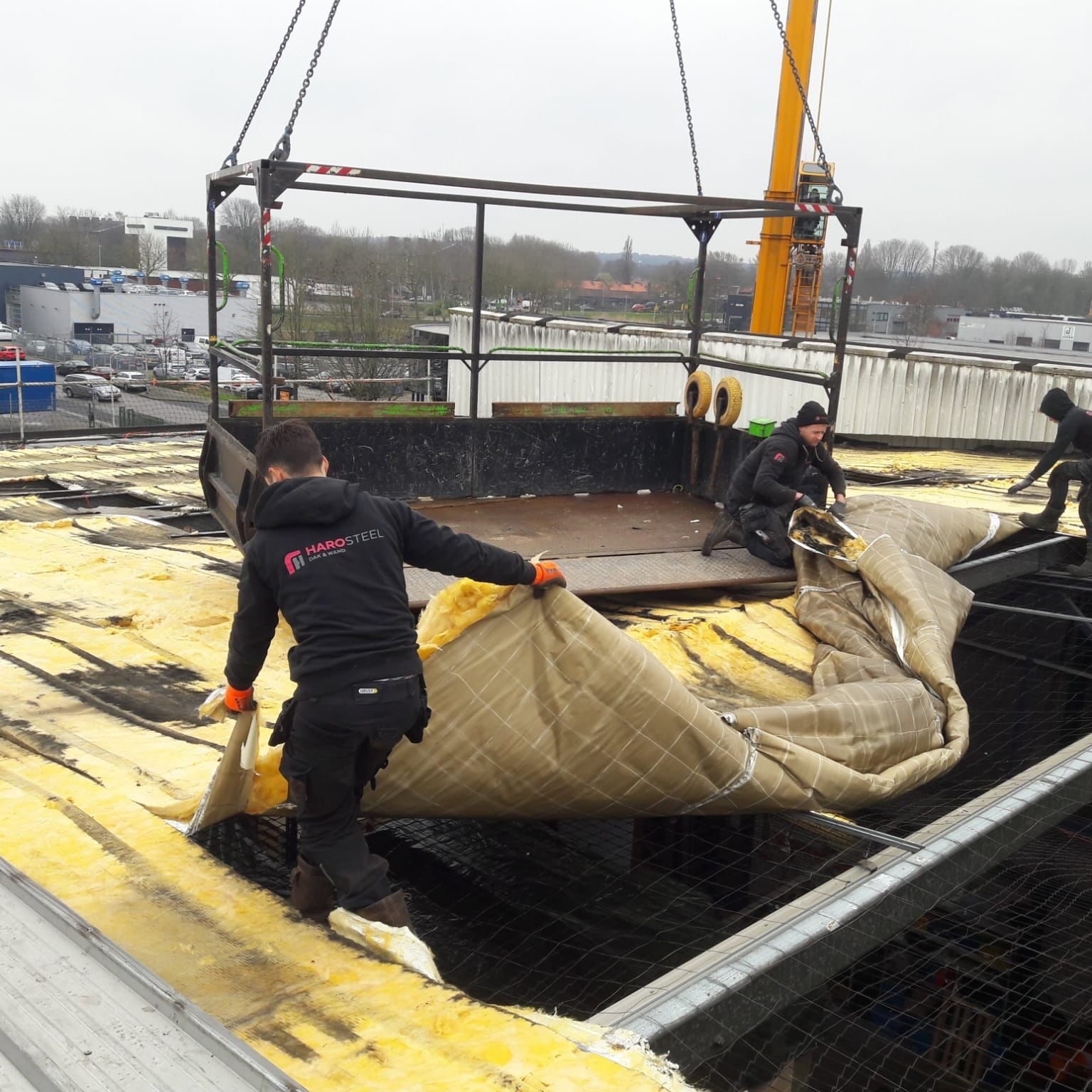 In maart 2020 hebben we op ons warehouse een nieuw dak gemaakt. Hierdoor hebben we weer een mooi, fris en geïsoleerd gebouw. Het weer zat niet mee, waardoor de vloer onder water stond, maar met vereende kracht is alles weer opgeruimd en schoongemaakt.
